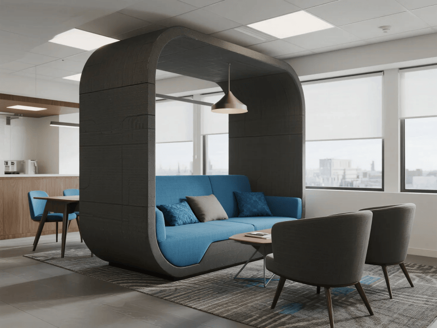 智能基建全場景覆蓋:聲學(xué)分區(qū)控制確保專注,空氣動(dòng)力學(xué)通風(fēng)優(yōu)化體感,磁吸式系統(tǒng)墻支持靈活改造。材質(zhì)選用導(dǎo)電混凝土地面、納米涂層玻璃隔斷,所有設(shè)計(jì)服務(wù)于沉浸式開發(fā)體驗(yàn)。最終呈現(xiàn)一個(gè)既冷酷高效又熱血澎湃的數(shù)字創(chuàng)作者烏托邦,讓每一行代碼都在最佳環(huán)境中誕生。