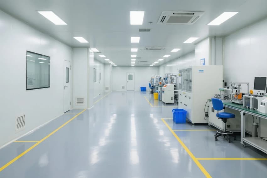本工程嚴(yán)格依據(jù)ISO14644-1Class7潔凈標(biāo)準(zhǔn),采用"工業(yè)4.0"設(shè)計(jì)理念,打造智能化電子光伏生產(chǎn)環(huán)境。主體結(jié)構(gòu)采用模塊化潔凈室系統(tǒng),50mm厚深灰抗菌彩鋼板墻體與淺灰防靜電環(huán)氧自流平地坪形成未來(lái)工業(yè)美學(xué)基調(diào),表面電阻穩(wěn)定控制在10^6-10^9Ω范圍。