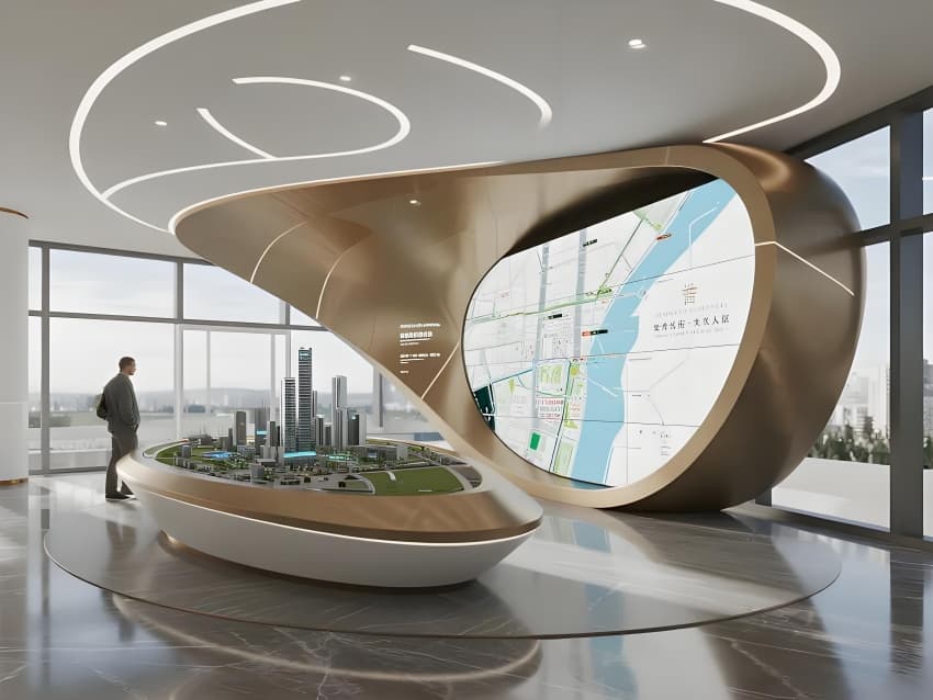 本案以"城市筑夢(mèng)師"為設(shè)計(jì)理念,融合地產(chǎn)專業(yè)性與未來生活美學(xué)。空間采用現(xiàn)代簡(jiǎn)約語言,主色調(diào)為高級(jí)灰基底,香檳金提升品質(zhì)感,企業(yè)藍(lán)強(qiáng)化品牌識(shí)別。核心區(qū)域突破傳...