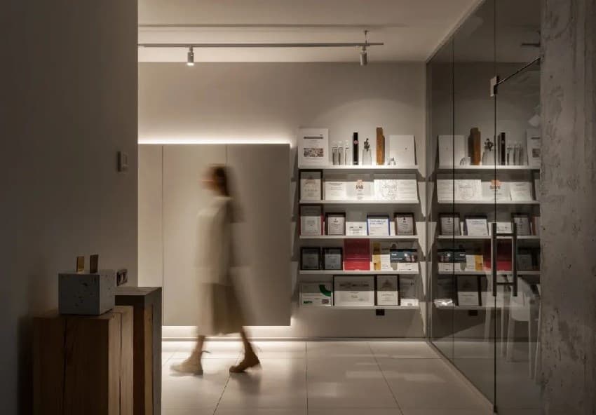 餐廳區(qū)域的設(shè)計(jì)也考慮到了工作室的傳統(tǒng)和聯(lián)合午餐。因此,即使在一個(gè)小空間,也可以安排一個(gè)寬敞的普通餐桌。技術(shù)室有一個(gè)儲(chǔ)存樣品和目錄的儲(chǔ)藏室,以及一個(gè)浴室和淋浴間。中轉(zhuǎn)室配備了封閉的存儲(chǔ)系統(tǒng)。