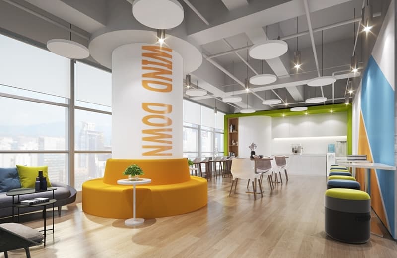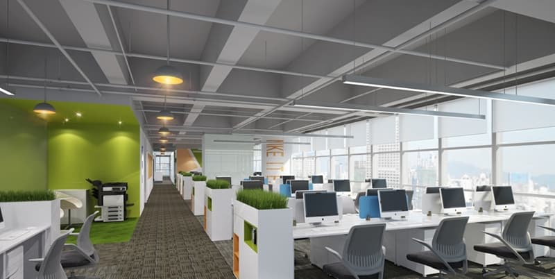 設(shè)計(jì)分析抓住主題與元素,此次辦公室裝修有很多精彩的細(xì)節(jié),比如從LOGO中延伸出來(lái)的綠色覆蓋了整個(gè)辦公室,結(jié)合家具年輕搶眼的色彩,空間變得十分活躍。為了打破規(guī)規(guī)矩矩的沉悶感,設(shè)計(jì)師用到了各種線(xiàn)條元素,如前臺(tái)的斜面,休閑區(qū)吊頂上的圓形裝飾,前廳一側(cè)的“綠盒子”洽談區(qū),文印區(qū)也是一個(gè)盒子造型。