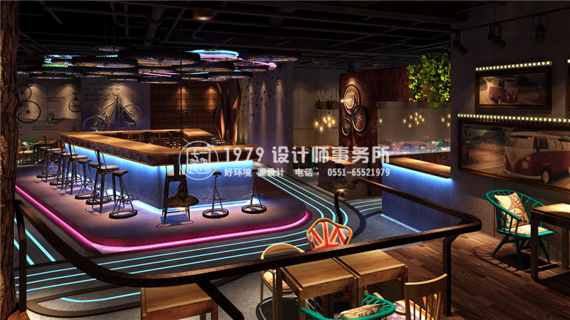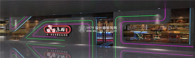 本項(xiàng)目的設(shè)計(jì)采用魚酷的LOGO跑道作為設(shè)計(jì)的核心點(diǎn),體現(xiàn)一個(gè)“活”字,自行車輪胎為輔助增強(qiáng)裝飾性和動(dòng)態(tài)感。魚酷,剝離了傳統(tǒng)燒烤的呆板模式,讓空間活泛而浪漫。