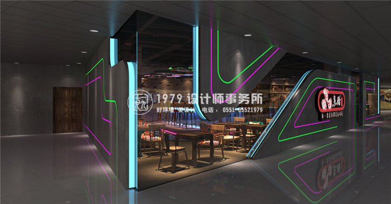 魚酷,每一條活魚都是運(yùn)動(dòng)員,精求“鮮活”的燒烤理念,引入帶狀設(shè)計(jì)元素拉伸視覺張力,流動(dòng)的視覺效果在照明設(shè)計(jì)的處理下更顯動(dòng)力。神秘基調(diào)加上絢麗燈光,強(qiáng)烈的色彩對(duì)比沖撞出意外的光影效果。清水混凝土,玻璃,榆木,鋼鐵,這些樸素的自然材質(zhì),始終是歸本主義獨(dú)一無(wú)二的創(chuàng)作靈感之源。