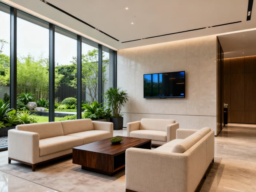 整體以淺灰、白色、金屬銀為基調(diào),通過統(tǒng)一材質(zhì)(金屬線條、玻璃、啞光板材)貫穿空間,既突出現(xiàn)代簡(jiǎn)約的利落感,又通過隱藏式收納、適光照明設(shè)計(jì),讓空間兼具實(shí)用性與品牌辨識(shí)度,契合4S店“專業(yè)服務(wù)+舒適體驗(yàn)”的核心需求。