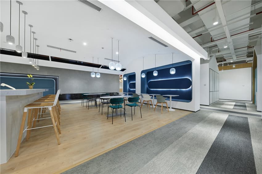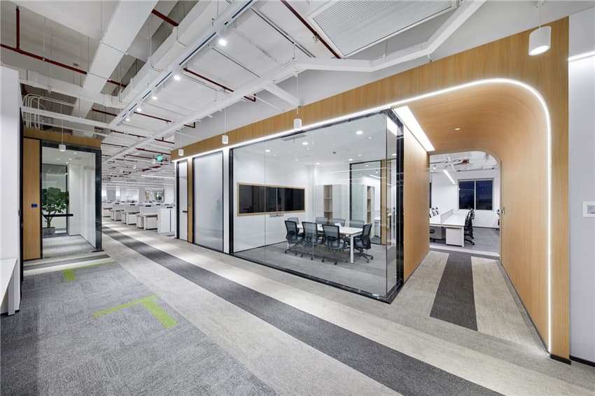 放射狀燈帶延續(xù)至空間四周極具視覺沖擊力,動(dòng)靜結(jié)合、張弛有度,傳達(dá)著空間的動(dòng)感和大氣。也強(qiáng)烈釋放著研發(fā)企業(yè)自信的特質(zhì)。