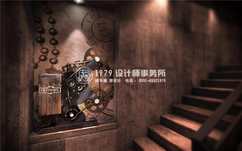 信手繪制在墻面的齒輪充滿動感,拾階而上又將是另一番別有洞天。