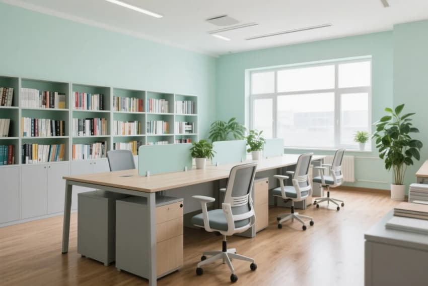 模塊化設(shè)計貫穿始終:教室配備可重組家具,走廊變身延伸學習區(qū),墻面集成可書寫/磁吸/投影多功能界面。生態(tài)元素融入細節(jié),如中庭光導管優(yōu)化采光,垂直花園凈化空氣,體現(xiàn)可持續(xù)教育理念。
