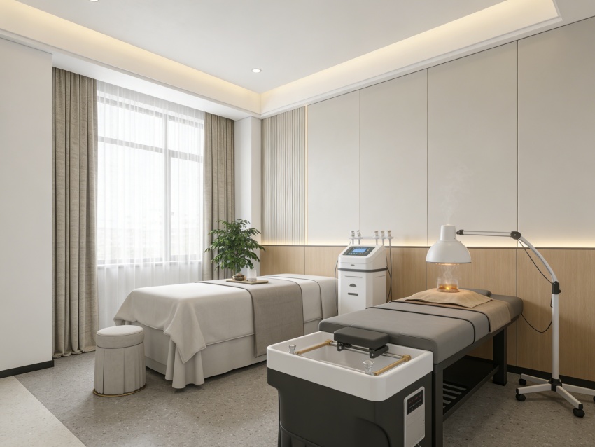 內(nèi)部功能分區(qū)清晰合理,涵蓋接待咨詢區(qū)、檢測診療區(qū)、康復(fù)理療區(qū)、休息等候區(qū)、營養(yǎng)指導(dǎo)區(qū)及行政辦公區(qū)。接待咨詢區(qū)以淺色系為主,搭配柔和燈光與綠植點(diǎn)綴,緩解用戶緊張情緒;檢測診療區(qū)注重隱私與專業(yè)適配,采用隔音玻璃隔斷,配備專業(yè)診療設(shè)備;康復(fù)理療區(qū)設(shè)置舒適理療床,搭配自然材質(zhì)軟裝,助力用戶身心放松;休息等候區(qū)打造輕量化休閑場景,方便用戶候診或術(shù)后休憩。