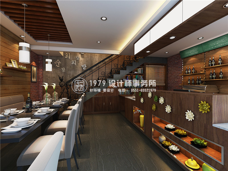 設(shè)計簡介:韓國紫菜包飯屬于一家連鎖店,在合肥目前有接近10家分店,在裝修風(fēng)格上結(jié)合了地域文化特點,韓國人的居住空間比較狹小,對空間的利用非常緊湊。席地而坐的生活習(xí)慣讓他們呈現(xiàn)出一種低姿態(tài)的,貼近自然的生活形態(tài),居室的設(shè)計所呈現(xiàn)出來的是小家碧玉式的精致,沒有奢華和張揚??臻g裝飾多采用簡潔、硬朗的直線條 ,反映出現(xiàn)代人追求簡單生活的居住要求,迎合了韓式家居追求內(nèi)斂、質(zhì)樸的設(shè)計風(fēng)格。