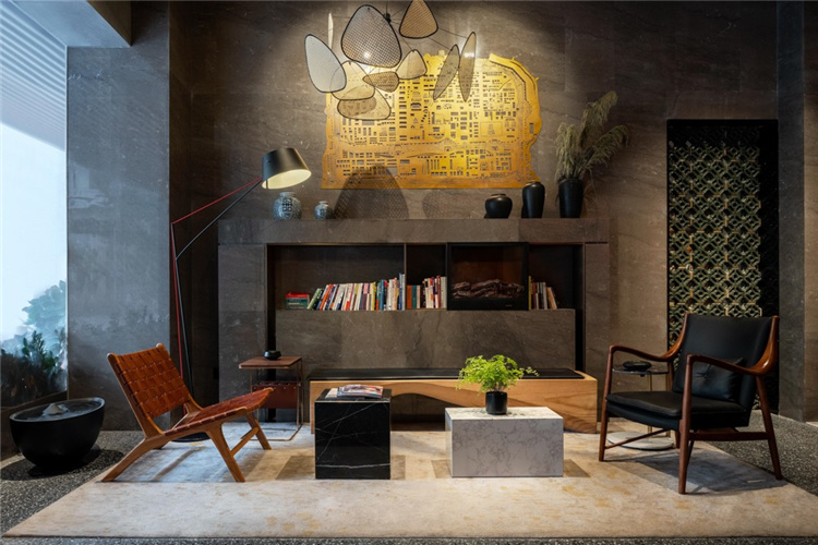 步入酒店,正面可見(jiàn)的是整面嶺南傳統(tǒng)藤編屏風(fēng)墻,業(yè)主收藏的明清書桌太師椅,讓空間增添了歷史的印跡,負(fù)載了城市的記憶和靈魂。如果說(shuō)老物件的深層價(jià)值是「情感記憶」,那么新物件的隱藏價(jià)值則是「身份構(gòu)建」。