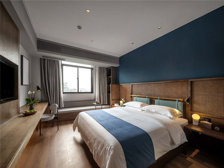 酒店的本質(zhì)是為旅人提供安身之所,接待處便以書寫安逸為起點(diǎn),融合手工銅制柜臺(tái),展現(xiàn)古舊、古色之美,體驗(yàn)?zāi)p帶來(lái)的歷史感、樸素感。