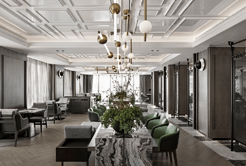 酒店大堂的設(shè)計著眼於化繁為簡,摒棄以往酒店富麗堂皇的水晶吊燈,采用了更為輕快時尚的設(shè)計,成穩(wěn)大氣的色調(diào)給顧客一種回歸本質(zhì)的自由形態(tài)。