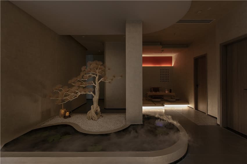 和諧統(tǒng)一的配色與細膩的材質(zhì),延伸至盥洗區(qū),集侘寂與日式元素相互融合、沉淀。設(shè)計師將護理的空間以靈韻的氣息蘊涵著美好意味,能帶客人進入一種平和的氛圍。細節(jié)上的元素同樣呼應(yīng)著我們看到的「水的波紋」,設(shè)計師讓每一個角落都可以給予客人一種熟悉感,從而卸下疲憊。