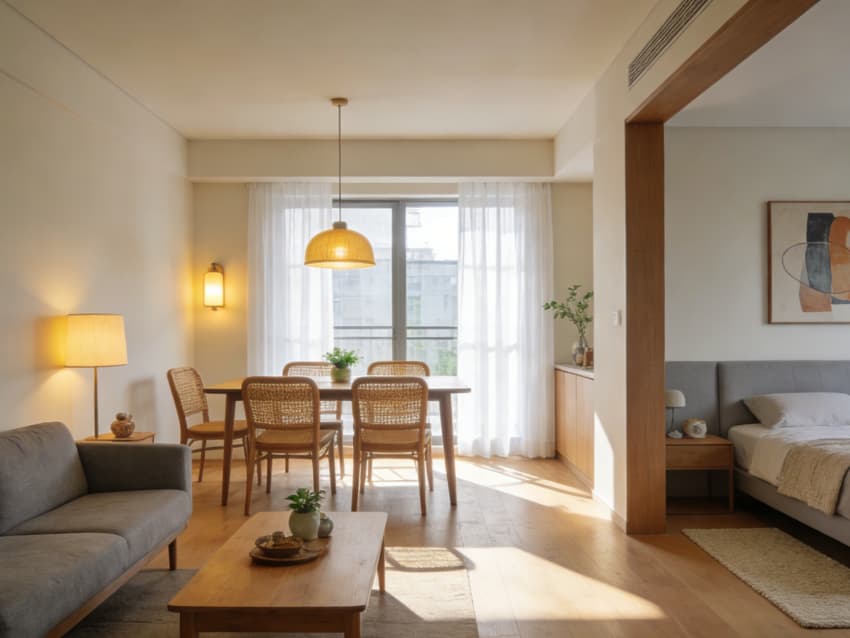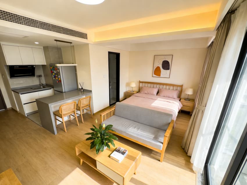 整個設(shè)計(jì)以“去酒店化、強(qiáng)居家感”為核心,通過自然材質(zhì)、復(fù)合功能與細(xì)節(jié)適配,為城市旅行者打造了一處“既像家,又比家省心”的居住空間,讓短期旅居也能擁有松弛自在的生活質(zhì)感。