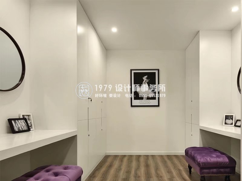 ▲空間分區(qū)明確,全白的空間簡潔大方,搭配紫色的軟裝,大氣優(yōu)雅
