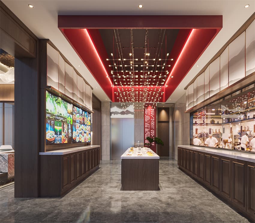 此外,開(kāi)放式廚房也提高了餐飲空間的利用率。在合肥的一些餐廳中,開(kāi)放式廚房設(shè)計(jì)不僅滿(mǎn)足了烹飪的需求,還巧妙地將廚房區(qū)域與用餐區(qū)域、吧臺(tái)區(qū)等功能區(qū)相結(jié)合,實(shí)現(xiàn)了多功能的使用。例如,一些餐廳在開(kāi)放式廚房旁邊設(shè)置了吧臺(tái),既可以作為用餐時(shí)的臨時(shí)工作區(qū)域,也可以作為顧客休息和交流的場(chǎng)所,大大提高了空間的利用率和靈活性。