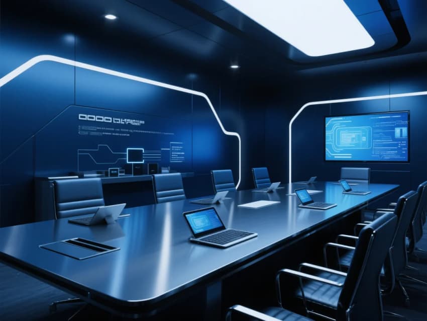 功能設(shè)計(jì)突出跨境屬性:4K視頻會(huì)議室實(shí)現(xiàn)全球連線,多語言導(dǎo)視系統(tǒng)服務(wù)國際客商,樣品中心搭載VR驗(yàn)貨技術(shù)。材質(zhì)選用船用鋼板再造的裝飾面、防眩光的超白玻璃,在商務(wù)嚴(yán)謹(jǐn)中暗藏航海冒險(xiǎn)精神,最終打造一個(gè)高效、智能、有故事的貿(mào)易生態(tài)辦公體。