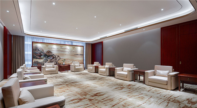 考慮到恒為科技所服務(wù)的客戶對(duì)象以政府部門為主,因此在甲方的要求下,以新中式風(fēng)格為主,柔軟的家具裝置更顯質(zhì)感。
