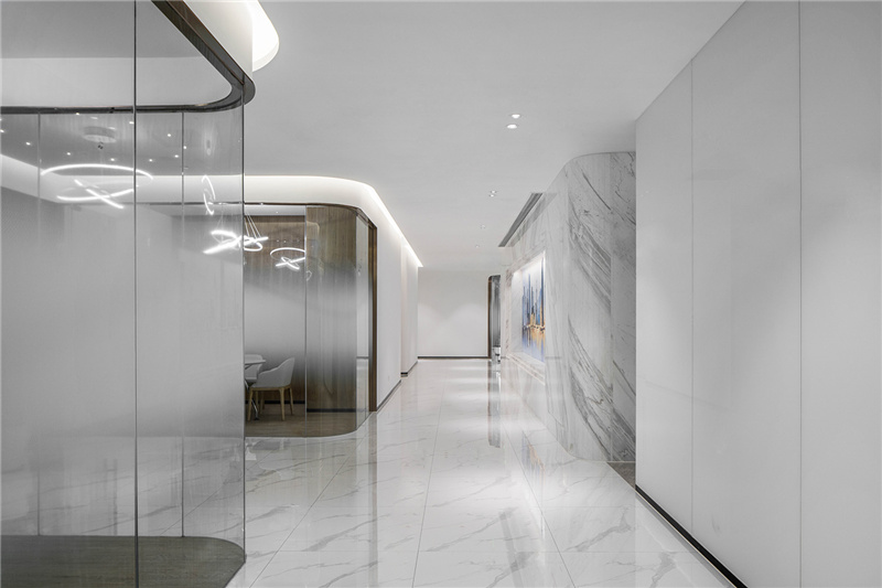 設(shè)計(jì)師在動(dòng)線的設(shè)計(jì)上提煉中性干練的線條,使過(guò)道呈現(xiàn)出自然通透的感覺(jué)。