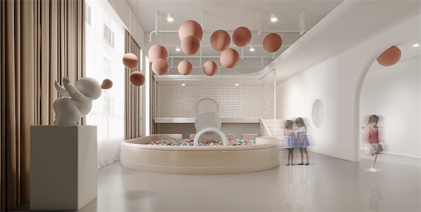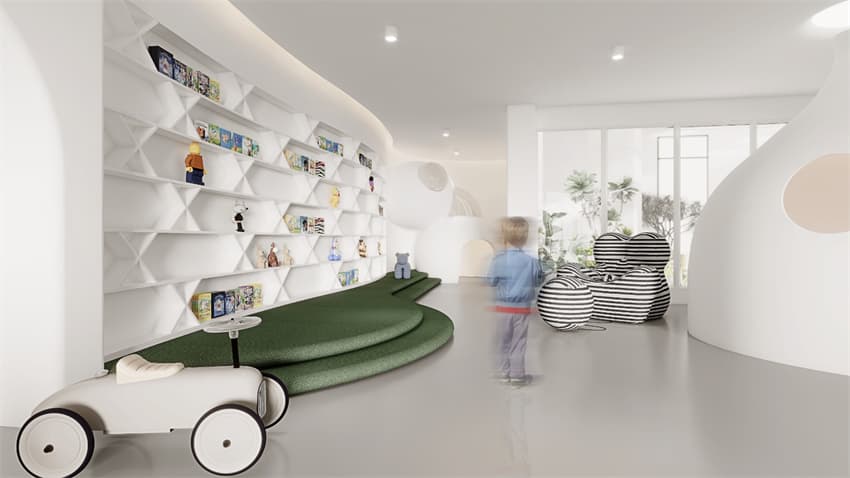 孩子進(jìn)入園內(nèi),就開(kāi)始與托育園建立了鏈接。面對(duì)父母的依依不舍、新而陌生環(huán)境時(shí),孩子會(huì)對(duì)父母產(chǎn)生依戀,可能會(huì)露出幾顆牙齒微笑或毫不妥協(xié)地大哭。父母也會(huì)產(chǎn)生那種離別時(shí)的壓力。 為了讓孩子有一個(gè)良好的入園適應(yīng),我們結(jié)合了國(guó)內(nèi)外知名教育學(xué)者對(duì)大腦神經(jīng)科學(xué)和依戀關(guān)系研究,以及諸多知名托育園教育家的大量實(shí)踐成果,整個(gè)空間表達(dá)緊緊圍繞“以建立愛(ài)的鏈接、父母與孩子之間情感的交接、孩子心理、適應(yīng)性、認(rèn)知情況”為重要核心,采用層層遞進(jìn)的手法,用親切的姿態(tài)和合理的形體表達(dá),為孩子們營(yíng)造出一個(gè)充滿親切、溫暖、探索與開(kāi)心的天堂。