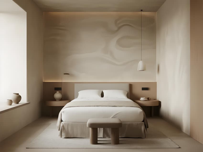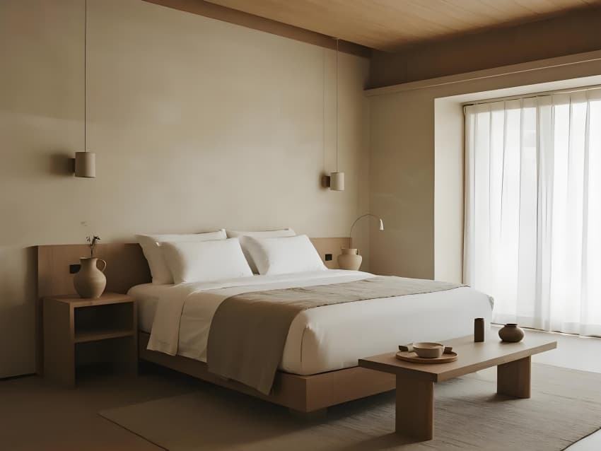 本案以"在地性的當(dāng)代轉(zhuǎn)譯"為設(shè)計(jì)核心,打造反標(biāo)準(zhǔn)化的現(xiàn)代民宿范本。建筑采用去裝飾化語(yǔ)言,保留原生地貌肌理,以懸浮體塊構(gòu)成空間序列。色彩系統(tǒng)提取自然色譜:晨曦灰、苔原綠、陶土橙,通過(guò)漸變釉面磚實(shí)現(xiàn)與環(huán)境的色彩滲透。