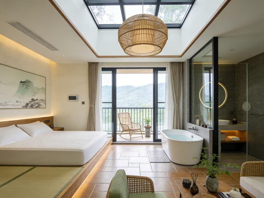 內(nèi)部功能分區(qū)科學(xué)適配康養(yǎng)需求,涵蓋康養(yǎng)接待區(qū)、理療康養(yǎng)區(qū)、景觀客房區(qū)、營養(yǎng)膳食餐廳、休閑冥想?yún)^(qū)及戶外露臺康養(yǎng)區(qū)。理療區(qū)配備專業(yè)康養(yǎng)設(shè)備,采用通透隔斷保障隱私的同時引入自然采光;客房以全景落地窗銜接景觀庭院,配備助眠床墊與香薰系統(tǒng);冥想?yún)^(qū)打造靜謐氛圍,搭配綠植景觀與柔和音效助賓客舒緩身心。