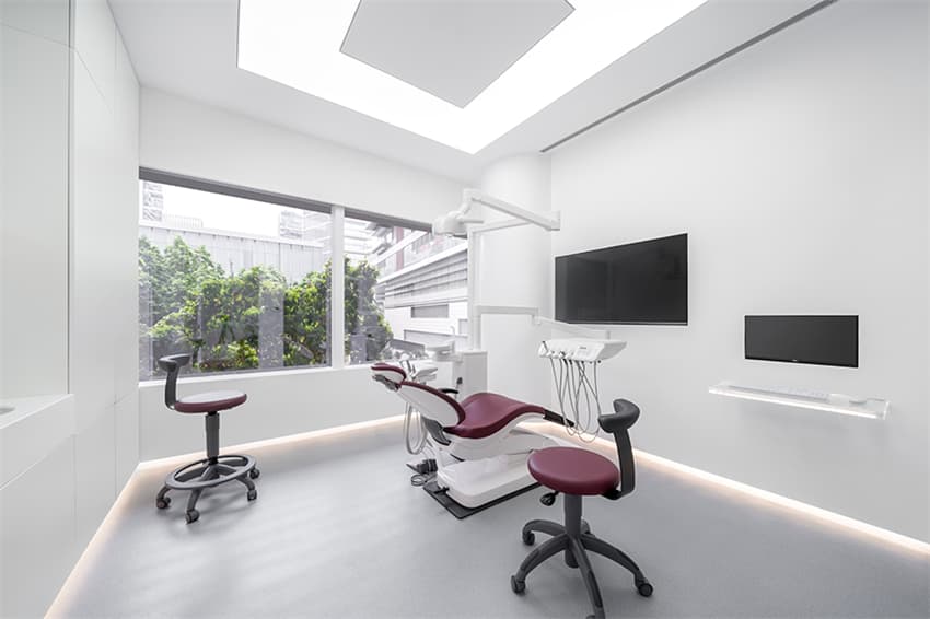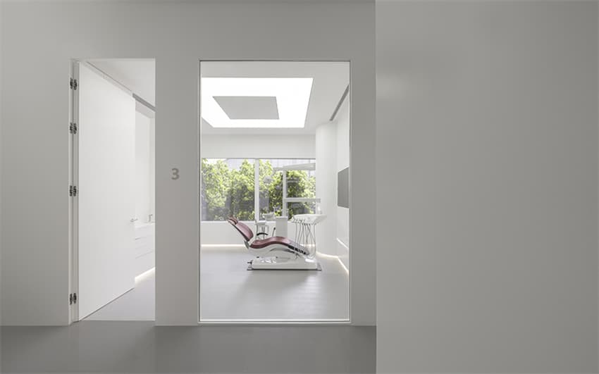 設(shè)計(jì)基于人的需求,空間融貫樸質(zhì)的極簡美學(xué),近乎全白的界面結(jié)合線條,光影關(guān)系,突顯平和輕盈,消釋傳統(tǒng)口腔門診的壓抑與不安感。