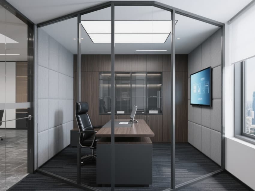 一層接待區(qū)設(shè)懸浮式智能前臺(tái),墻面嵌動(dòng)態(tài)數(shù)據(jù)屏;二層開放式辦公區(qū)配模塊化升降工位,桌面藏?zé)o線充電模塊,天花懸可變色線性燈;三層會(huì)議室用雙層隔音玻璃圍合,墻裝一體化觸控屏,還設(shè)獨(dú)立茶水間,配感應(yīng)水龍頭與智能儲(chǔ)物柜。?
