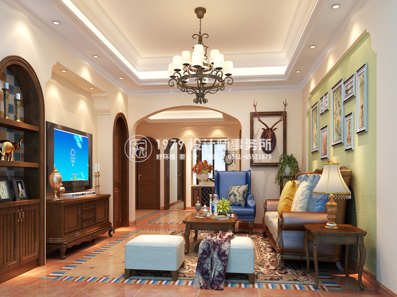 設計簡介:美式風格講究自在、隨意的不羈生活方式,沒有太多造作的修飾與約束,不經意中也成就了另外一種休閑式的文化感、有貴氣感,還不能缺乏自在感與情調感的浪漫。造型簡單、明快,而且實用,懷舊、浪漫和尊重時間。