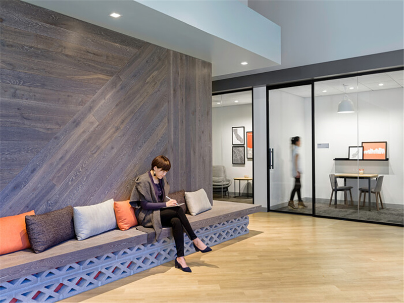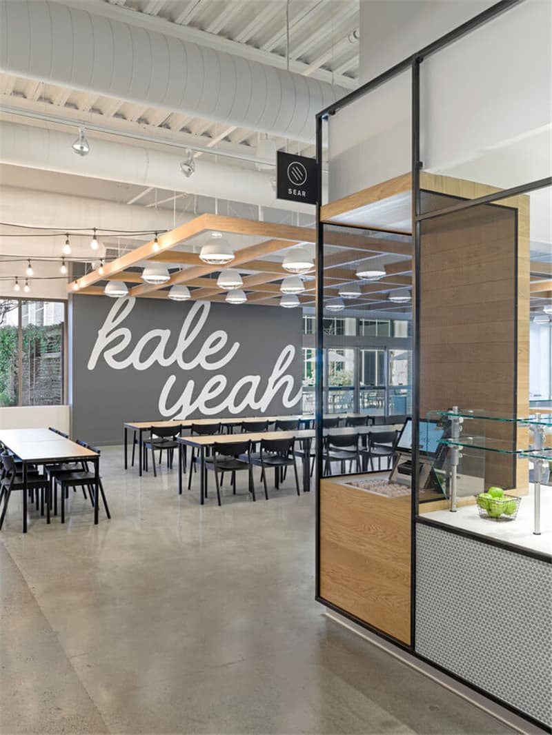 新食物體驗培育社區(qū),也是公司的企業(yè)食堂,是員工們最喜歡來的地方。在食品卡車運動的啟發(fā)下,這個空間通過鼓勵發(fā)現(xiàn)和聯(lián)系來慶祝社區(qū)的多樣性。把食品卡車文化引入內部,把食物區(qū)推到外面,讓員工們可以在空間里進出,發(fā)現(xiàn)各種各樣的文化美食。野餐桌上、冰激凌車、混凝土塊和串燈都營造出了在室外的氛圍。餐廳還有一個無縫的自我訂購系統(tǒng)消除了排隊并鼓勵員工進行社交活動,并提供工作或社交的多種多樣的座位選擇:為大型團體提供的開放式座位,為私密的談話和電話室提供座位,以集中或進行私人會議。
