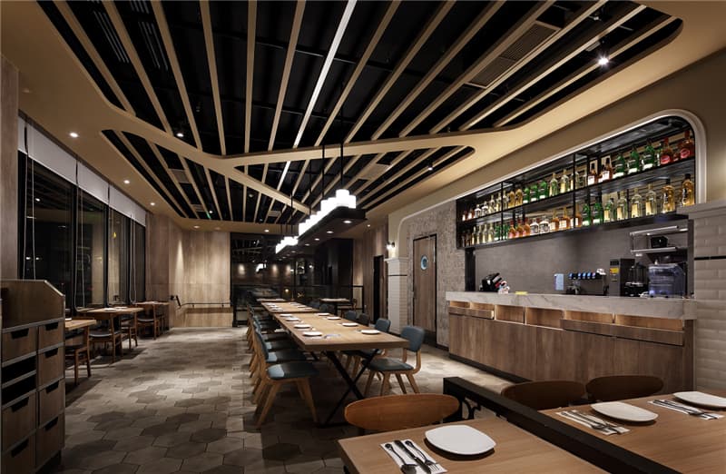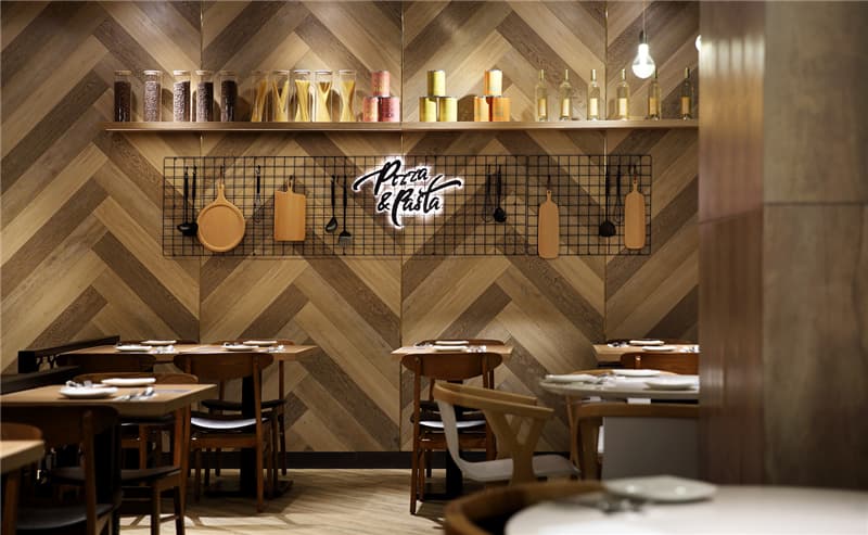空間處處凝煉“披薩專家和新鮮美食”的品牌觀,大幅的披薩小鎮(zhèn)插畫,將美食的生命力定格于空間場(chǎng)景,炊具和食材創(chuàng)意陳列,讓食客直接與食物對(duì)話,增進(jìn)親密體驗(yàn)。