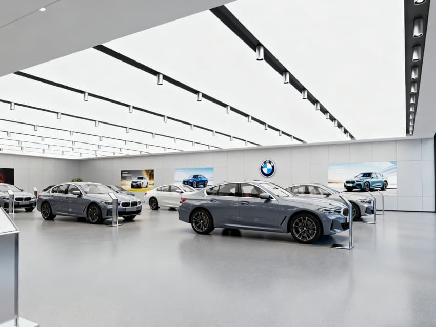該4S店以“現(xiàn)代簡(jiǎn)約+汽車場(chǎng)景適配”為核心設(shè)計(jì)理念,2600平空間按“前店后廠、分層服務(wù)”邏輯規(guī)劃,內(nèi)外風(fēng)格高度統(tǒng)一。外立面采用淺銀灰金屬幕墻與超寬高透玻璃組合,中部預(yù)留品牌LOGO展示區(qū),搭配橫向LED燈帶,夜間可動(dòng)態(tài)呈現(xiàn)車型信息;入口設(shè)淺灰防滑坡道與無(wú)框玻璃門,既保障車輛進(jìn)出便捷,又通過通透材質(zhì)讓室內(nèi)展車直觀呈現(xiàn),強(qiáng)化吸引性。?