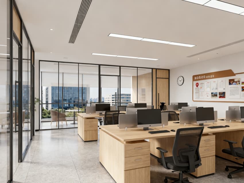 整體以淺灰、白色、金屬銀為基調(diào),通過統(tǒng)一材質(zhì)(金屬線條、玻璃、啞光板材)貫穿空間,既突出現(xiàn)代簡(jiǎn)約的利落感,又通過隱藏式收納、適光照明設(shè)計(jì),讓空間兼具實(shí)用性與品牌辨識(shí)度,契合4S店“專業(yè)服務(wù)+舒適體驗(yàn)”的核心需求。