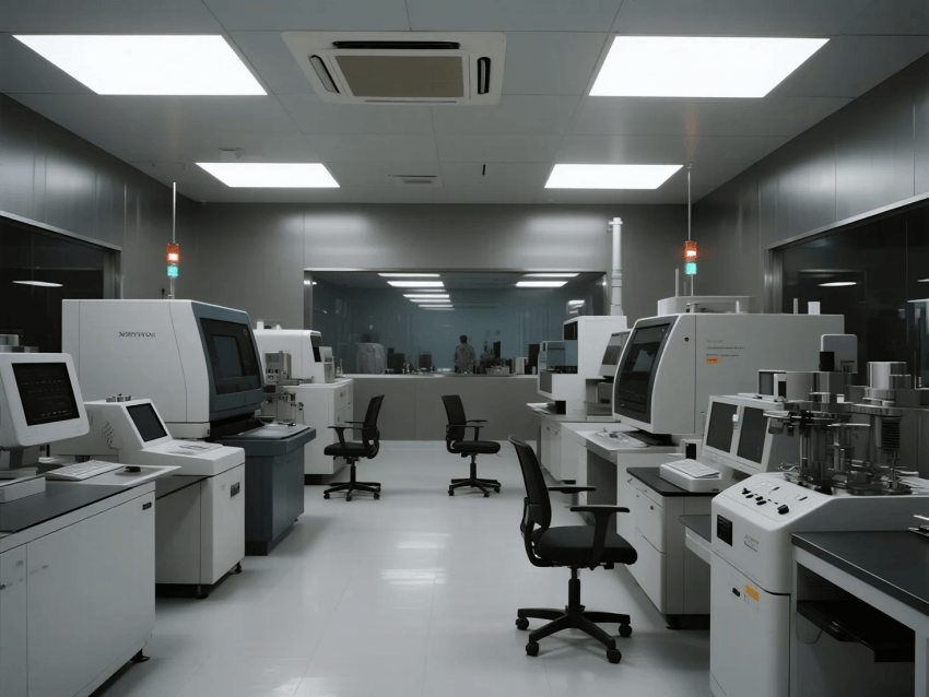 功能設(shè)計遵循晶圓生產(chǎn)邏輯:氣閘艙式動線管理,微環(huán)境分級控制,數(shù)據(jù)可視化墻實時監(jiān)控良率。材質(zhì)選用抗菌涂層鋼板、防靜電環(huán)氧地坪,將納米級制造精度轉(zhuǎn)化為空間體驗。最終呈現(xiàn)一個既嚴(yán)謹(jǐn)精密又充滿科技儀式感的芯片制造圣地。
