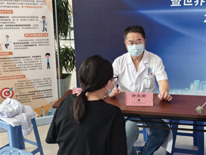 血液內科學科帶頭人朱雄鵬教授在現(xiàn)場為前來咨詢的市民答疑解惑