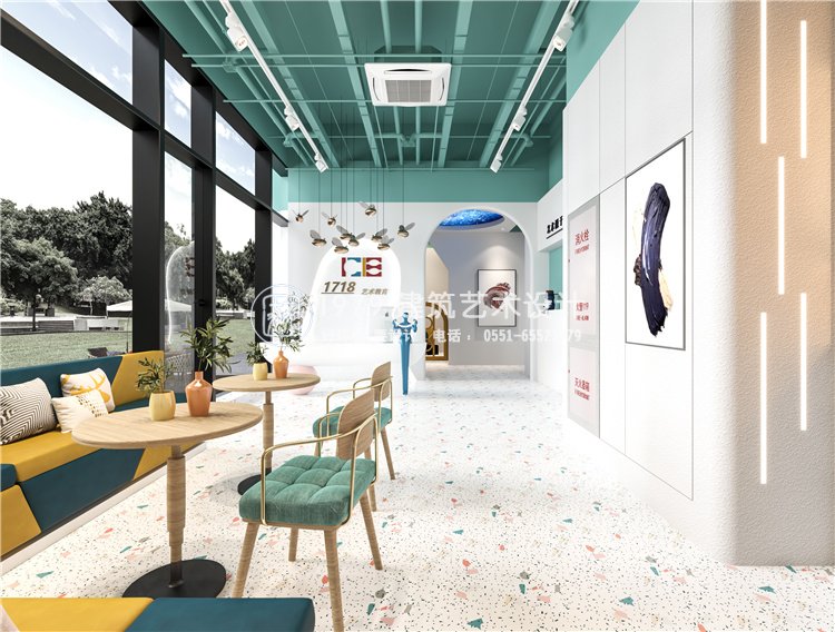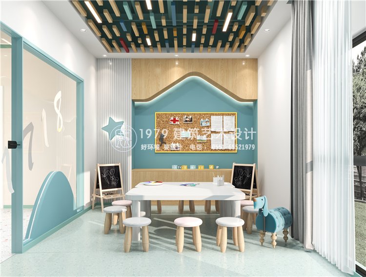 我們的設(shè)計目標(biāo)是將藝術(shù)教育理念與室內(nèi)設(shè)計融為一體。在前期設(shè)計理念構(gòu)思中,設(shè)計師考慮兒童玩樂天性,并融合企業(yè)需求,設(shè)計師在大自然中提取靈感,結(jié)合品牌進行綜合設(shè)計,藝術(shù)教學(xué)空間在功能上是一個教育場所,在精神上是一個激發(fā)兒童好奇心,讓他們?nèi)ジ兄?,?chuàng)造美的成長空間。