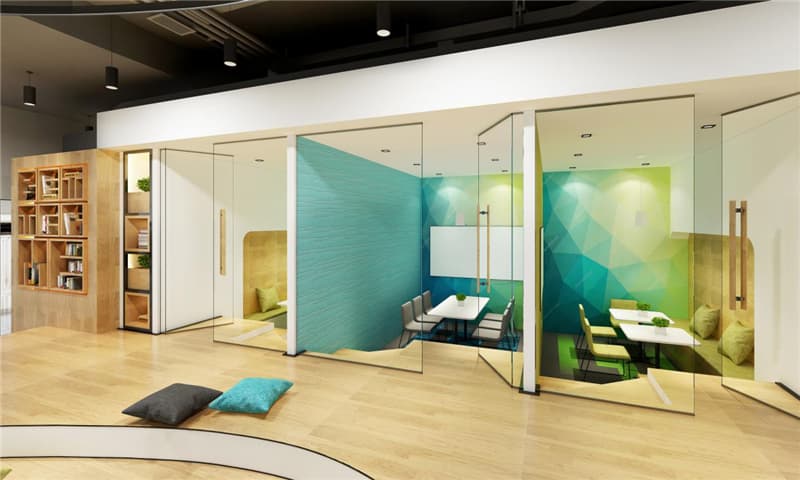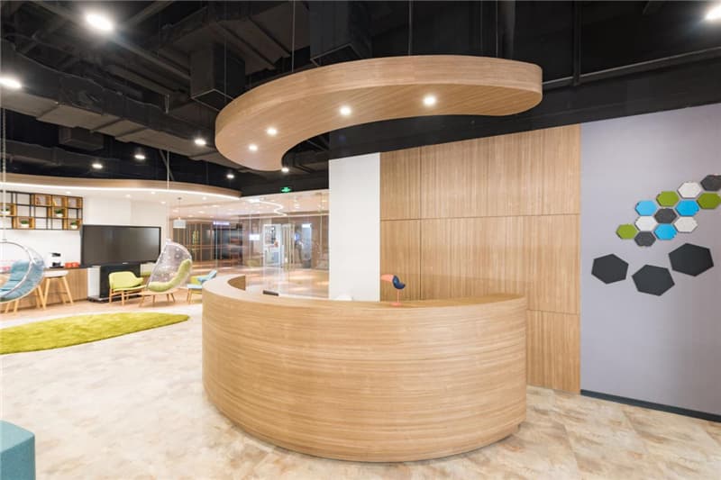 同時讓家長通過動線的引導直接進入空間之中,可以真切感受到機構(gòu)的教學實力與學習氛圍。開放辦公區(qū)域中實景做出的比效果圖還更加柔和。