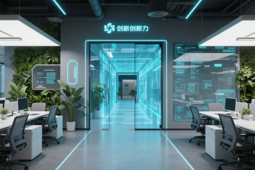 設(shè)計(jì)以"科技感、開放協(xié)作、智能高效"為核心理念,打造激發(fā)創(chuàng)新力的數(shù)字工作空間。整體采用太空灰與電子藍(lán)主色調(diào),融入賽博朋克元素與生態(tài)綠植的碰撞。入口以全息投影走廊與動(dòng)態(tài)數(shù)據(jù)流墻面塑造科技第一印象,開放辦公區(qū)采用模塊化升降工作站與透明玻璃編程墻。核心區(qū)設(shè)置VR會(huì)議室,配備曲面環(huán)繞屏與智能聲控系統(tǒng),休閑區(qū)植入太空艙冥想室與電競(jìng)減壓角。材質(zhì)上融合碳纖維飾面、導(dǎo)光亞克力與再生木材,路徑通過交互式地屏智能引導(dǎo),整體構(gòu)建一個(gè)兼具硬核科技與人文關(guān)懷的創(chuàng)新工場(chǎng)。