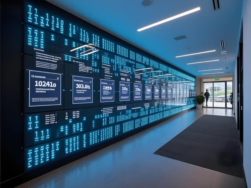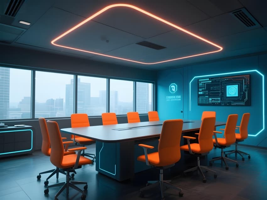本案以"代碼可視化"為概念,打造數(shù)字原住民的工作烏托邦。入口處10米長的二進(jìn)制藝術(shù)墻由可觸控LED模塊組成,滑動即顯示公司里程碑事件。開放式辦公區(qū)采用懸浮式工作站設(shè)計,頭頂管線層以透明亞克力包裹并內(nèi)置RGB氛圍燈,模仿計算機(jī)內(nèi)部結(jié)構(gòu)美學(xué)。中央樞紐區(qū)設(shè)置環(huán)形數(shù)字瀑布屏,實(shí)時滾動全球分支機(jī)構(gòu)的開發(fā)數(shù)據(jù)。極簡主義的混凝土立柱表面蝕刻Python/Java等代碼片段,而休息區(qū)則通過暖木色階梯書架和苔蘚墻平衡科技冰冷感。聲學(xué)吊頂模擬WiFi信號波動曲線,智能玻璃窗隨PM2.5數(shù)值自動開啟新風(fēng)系統(tǒng),實(shí)現(xiàn)科技美學(xué)與人體工學(xué)的深度耦合。