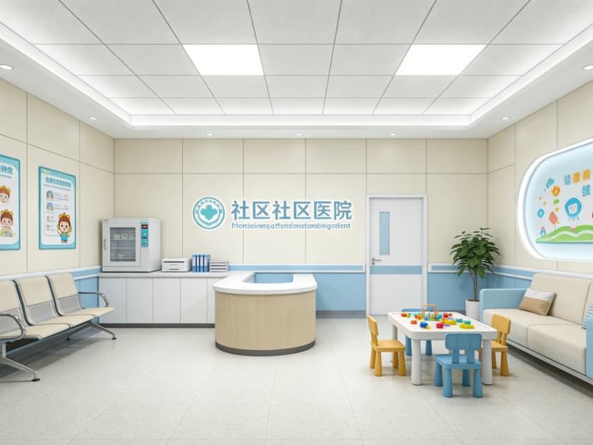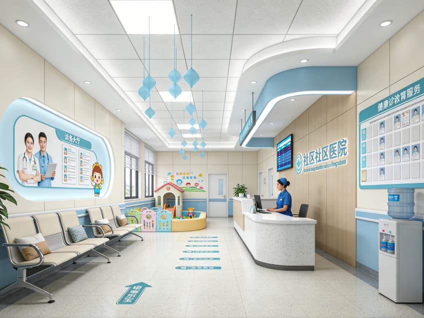 • 本社區(qū)醫(yī)院內(nèi)部以“溫馨便民·專業(yè)規(guī)范”為核心設(shè)計理念,整體采用柔和親切的現(xiàn)代醫(yī)療風(fēng)格,精準(zhǔn)適配全科診療、預(yù)防接種、健康宣教等社區(qū)醫(yī)療核心需求。設(shè)計弱化傳統(tǒng)醫(yī)院的冰冷感,通過溫潤色調(diào)與人性化布局,打造讓居民倍感安心的近距離醫(yī)療服務(wù)空間。