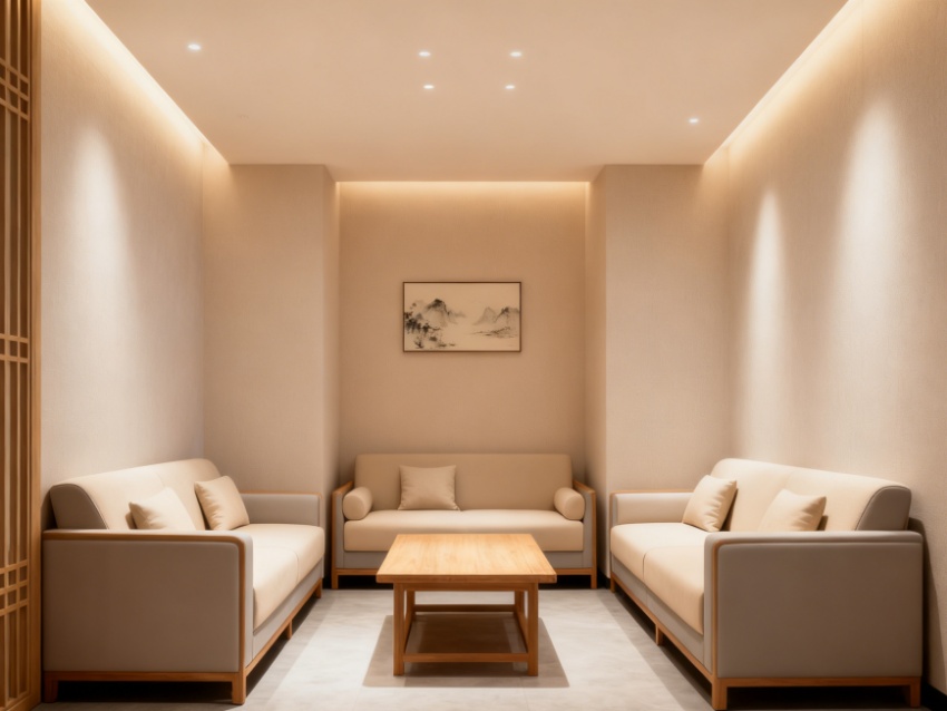 內(nèi)部空間遵循“療愈優(yōu)先、分區(qū)清晰”原則,科學(xué)規(guī)劃足浴包間、SPA理療區(qū)、養(yǎng)生茶歇區(qū)、汗蒸房及配套服務(wù)區(qū)。12間足浴包間分設(shè)單人、雙人及多人房型,采用軟包隔斷保障私密性;SPA區(qū)以挑高設(shè)計搭配紗幔軟裝,營造空靈靜謐感;茶歇區(qū)融入原木茶臺與綠植造景,提供放松休憩場景;汗蒸房采用環(huán)保巖材,適配養(yǎng)生需求。?