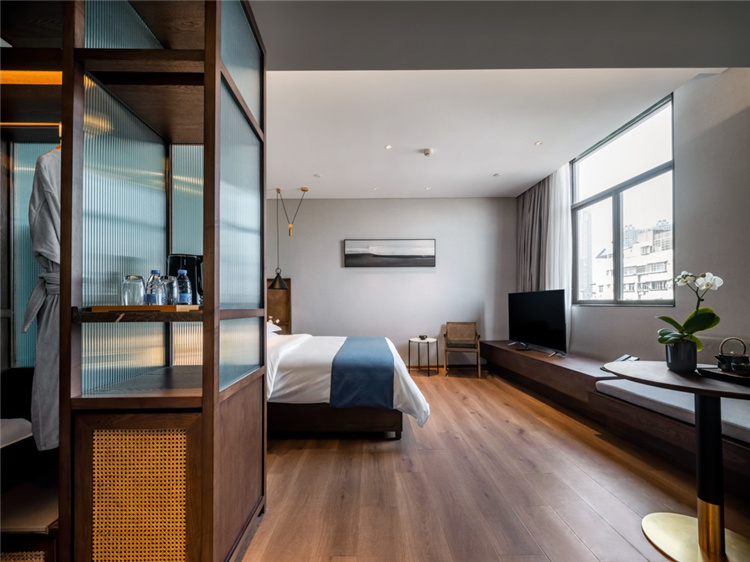 客房是一個(gè)放松、舒適、寂靜的氛圍,窗外可以看到對(duì)面人家樓頂上種滿花草,不時(shí)有人澆花遛鳥(niǎo),房間內(nèi)將當(dāng)?shù)氐娘嫴栉幕谌肫渲?,泡一壺功夫茶感受這里一點(diǎn)點(diǎn)悠閑、一點(diǎn)點(diǎn)熱情。