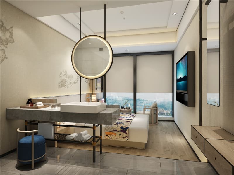 客房配置:智能化、關(guān)愛女性、藍(lán)牙音箱、自助洗衣房、新風(fēng)系統(tǒng)、部分配影院、中央凈水系統(tǒng)、