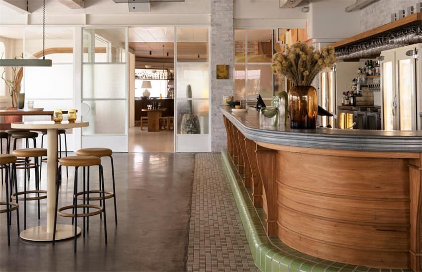 建筑的團(tuán)隊(duì)試圖揭示元素的過去而引入新的“毫不費(fèi)力地酷”,低fi角色。藝術(shù)裝飾拱門,曲線和原砌體外墻混合與一個(gè)新的建筑語言,因此打開了空間。定制的復(fù)古靈感家具和照明,芥末水磨石,發(fā)現(xiàn)膠木材保持某種意義上的發(fā)現(xiàn)和熟悉。