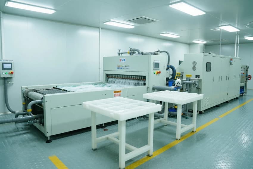 •   ?本醫(yī)用手套車間采用"原料-成型-硫化-包裝"全封閉流水線設(shè)計(jì),核心浸漬區(qū)維持Class100,000級潔凈環(huán)境,配備22米恒溫鏈?zhǔn)胶娴来_保硫化均勻性。原料處理采用氮?dú)獗Wo(hù)系統(tǒng)防止乳膠變質(zhì),智能化浸漬槽通過PID控制實(shí)現(xiàn)膜厚公差±0.01mm。特色設(shè)計(jì)包括:1)手模自動檢測系統(tǒng)(AI識別缺損)2)熱能回收裝置(節(jié)能30%)3)雙通道EO滅菌(F0≥15)。安全體系實(shí)現(xiàn):1)氨氣濃度實(shí)時(shí)報(bào)警2)應(yīng)急電源0.5秒切換3)廢水預(yù)處理(pH6-8)。質(zhì)檢區(qū)配備全自動針孔檢測儀與生物負(fù)載測試設(shè)備,確保產(chǎn)品符合FDA510(k)標(biāo)準(zhǔn)。車間通過模塊化布局可實(shí)現(xiàn)日產(chǎn)50萬副醫(yī)用檢查手套,材料利用率達(dá)98.5%。