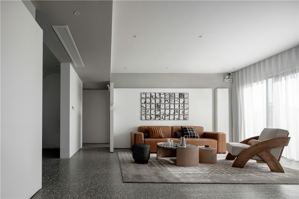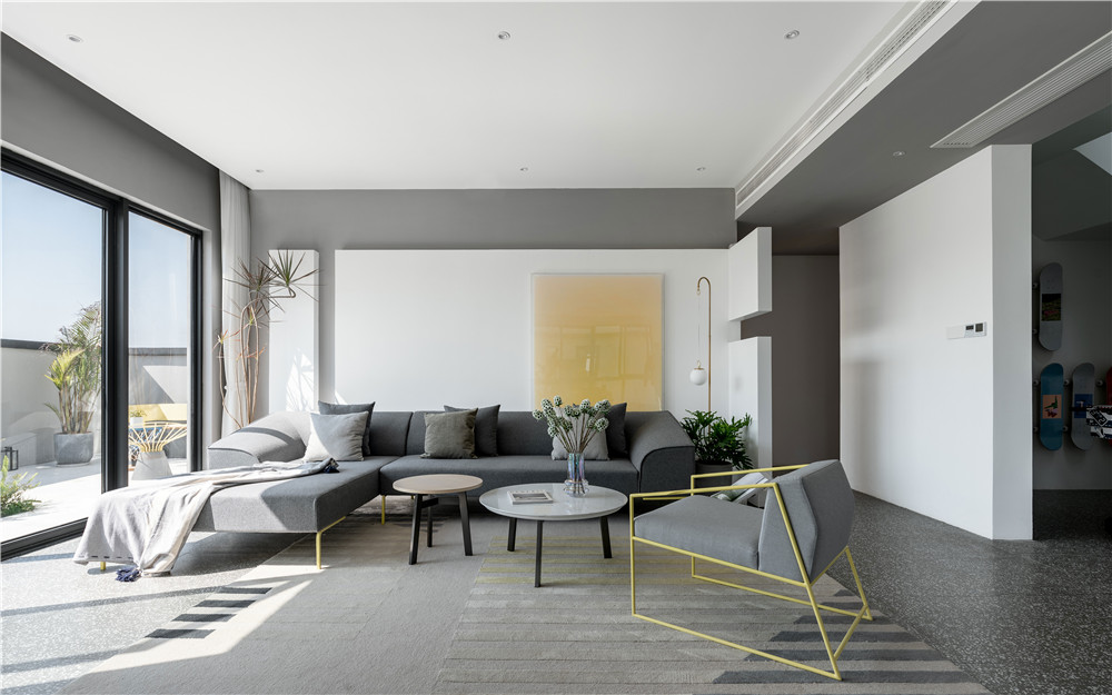 設(shè)計(jì)師一直在思考如何營造空間的秩序、空間的關(guān)系、空間的情感,最終打造了一個(gè)“無限藝術(shù)空間”,整個(gè)空間運(yùn)用簡單的方形,相互疊加、構(gòu)筑,空間的關(guān)系或敞開,或閉合,達(dá)到一種無邊界的空間狀態(tài)。推掉原有的墻體,又新建新的墻體,用“不完整”的方形劃分空間界限。同時(shí)在色彩上,回應(yīng)對“藝術(shù)”的思考,設(shè)計(jì)師運(yùn)用了白色,這種無色的顏色,也在述說著空間情感,更純粹,更真實(shí),且沒有邊界,為每一位到訪者留下無限的想象空間。
