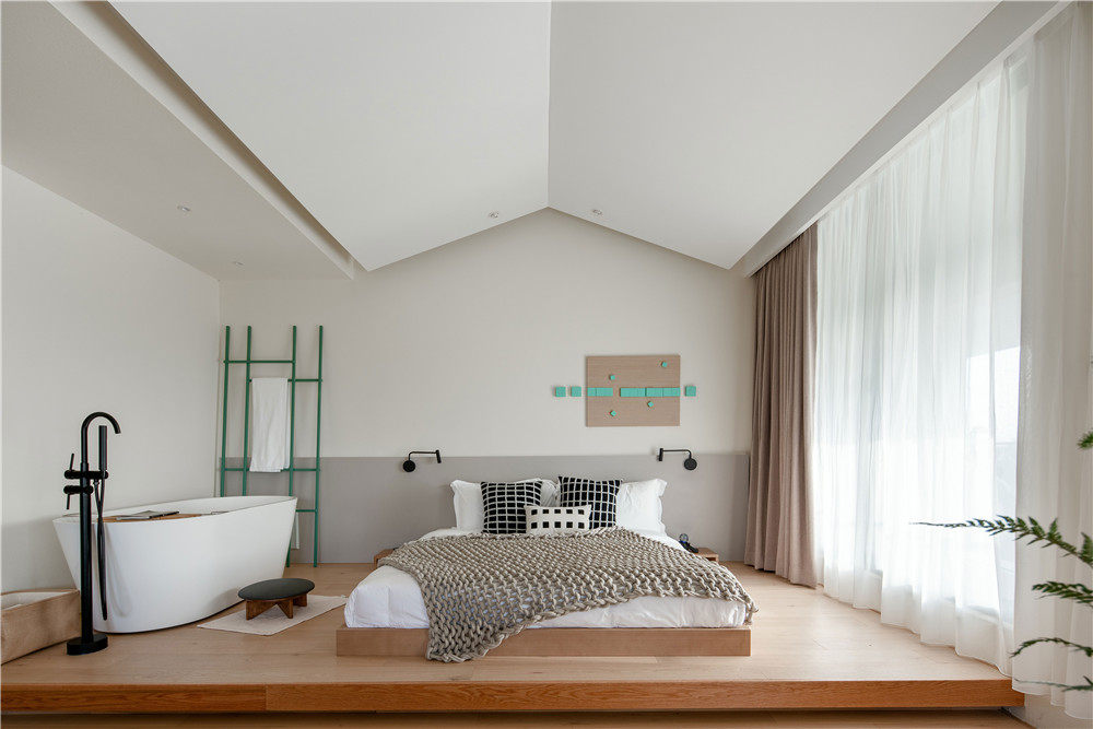 每個(gè)人都有一顆追求新奇事物的心,偶爾想要逃離城市的喧囂,跳出日常周而復(fù)始的漩渦。在這里,有一種極簡的現(xiàn)代感,它遵循千百年來江南的白墻黑瓦,卻又棱角分明。線條干凈利落,光影在河面瀲滟,日子在這里漸漸停擺。