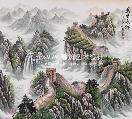 長城山水畫作品,觀賞之,讓人大有"登山則情滿于山,觀海則情溢于海"之感,其長城山水畫作品既有著深厚的傳統(tǒng)積淀,又有著鮮明的時代氣息,雄渾博大、氣勢恢宏。將長城山水畫用于茶樓裝飾,不僅彰顯了茶樓的美好形象,更是文化內(nèi)涵的一種重要體現(xiàn)!