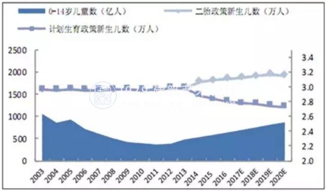 隨著二胎政策的開放,以及我國居民收入水平的提高,到了生育年齡的人群更有意愿生兩個(gè)小孩。未來每年新生兒數(shù)將介于1780-1950萬人,兒童人口總數(shù)將維持在2.2-2.5億之間。如此巨大的基數(shù),決定了親子市場(chǎng)將在相當(dāng)長的一段時(shí)間內(nèi),保持非常穩(wěn)定而高速的增長。