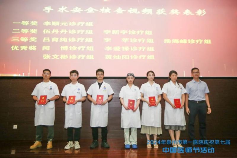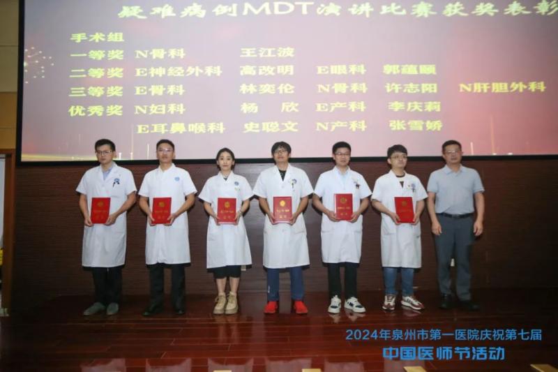 表彰大會上,還為泉州市第一醫(yī)院醫(yī)療集團(tuán)2024年“醫(yī)師節(jié)”籃球聯(lián)賽、手術(shù)安全核查視頻競賽、疑難病歷MDT演講比賽的獲獎團(tuán)體及個人頒發(fā)證書。
